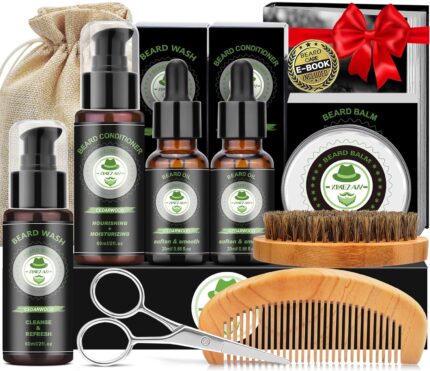 Dad Husband Christmas Gifts,XIKEZAN Beard Kit for Men Grooming with Cedarwood Wash,Conditioner,Oil,Balm,Brush,Comb,Scissors,Anniversary Valentines Birthday Fathers Gift Ideas for Men Grandpa Boyfriend