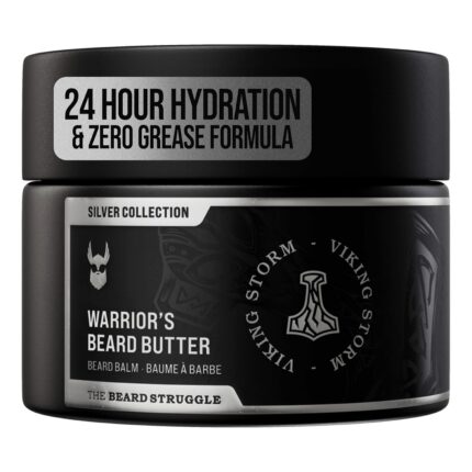 The Beard Struggle Warrior’s Beard Balm – Silver Collection, Viking Storm – Non-Greasy Low-Hold Formula, Luxurious Cologne-Grade Fragrances 100% Natural Ingredients – 50g / 1.76 US. oz.