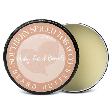 Tuscan Cooper’s Baby Faced Beards Butter for Men – Moisturizing Beard Balm Cream and Softener for All Hair Types Including Coarse Hair – 4oz Hydration and Conditioning Care – Southern Spiced Tobacco
