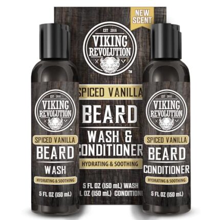 Viking Revolution Beard Wash and Beard Conditioner for Men with Argan Oil and Jojoba Oil – Beard Softener and Strengthener Beard Care Beard Shampoo and Conditioner with Beard Oil (5oz, Spiced Vanilla)