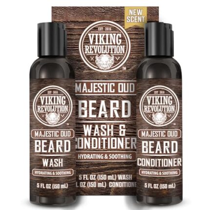 Viking Revolution Beard Wash and Beard Conditioner for Men with Argan Oil and Jojoba Oil – Beard Softener and Strengthener Beard Care Beard Shampoo and Conditioner with Beard Oil (5oz, Majestic Oud)