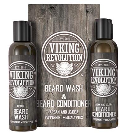 Viking Revolution Beard Wash & Beard Conditioner Set w/Argan & Jojoba Oils ? Softens, Smooths & Strengthens Beard Growth – Natural Peppermint and Eucalyptus Scent – Beard Shampoo w/Beard Oil (5 oz)