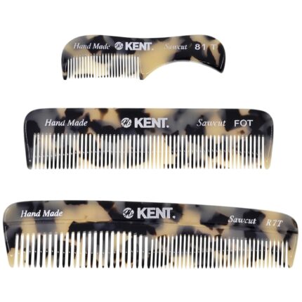 Kent Set Men’s Hair Pocket Combs, Tortoise 81T X-Small, FOT All Fine Tooth, R7t Double Toothed Fine and Coarse. Best Hair, Beard and Mustache Grooming Kit for Travel and Home Care, Handmade in England