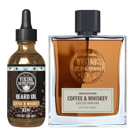 Viking Revolution Coffee Whiskey Beard Oil (1 Fl Oz) Beard Softener, Strengthener, Moisturizer and Coffee Whiskey Cologne for Men with Notes of Roasted Coffee, Aged Whiskey and Cedar (3.5 Fl Oz)
