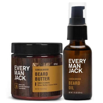 Every Man Jack Beard Oil & Beard Butter Bundle – Sandalwood Fragrance – Rejuvenates, Hydrates & Styles Dry Beards – Naturally Derived with Cocoa Butter and Shea Butter