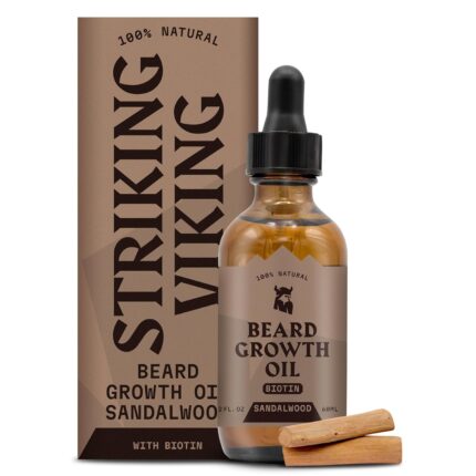 Striking Viking Beard Growth Oil for Men – 2 Fl Oz, Sandalwood – Thickening & Conditioning Beard Oil with Biotin – Facial Hair Serum with Argan & Jojoba for Hydration