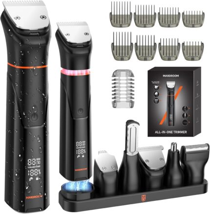 All-in-One Beard Trimmer for Men, Electric Waterproof Wet/Dry Razor Shaver for Mustache, Facial, Beard Styler, Mens Beard Grooming Kit with LED Display, USB Recharge – Black