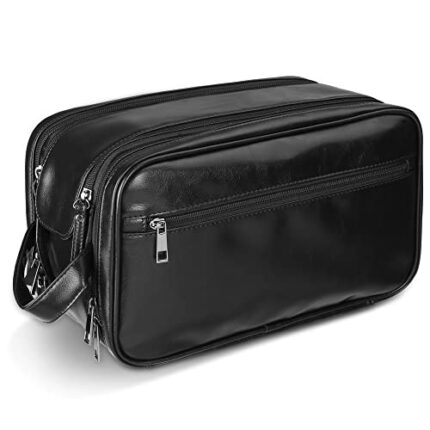 BNSPOCKET Personalized Leather Travel Toiletry Bag for Men, Large Travel Bathroom Shaving Dopp Kit, Large Cosmetic Travel Bag Waterproof