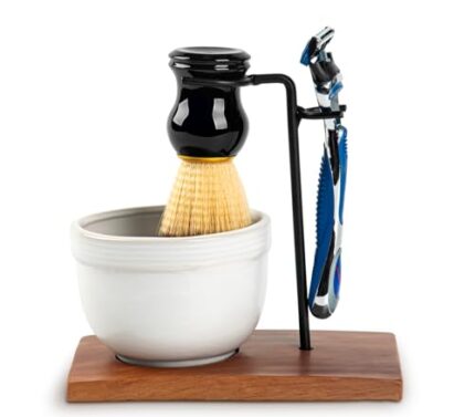 Deluxe Shaving Kit for Men, 3 in 1 Shaving Set Includes Shaving Brush, Shaving Bowl, Razor & Brush Holder