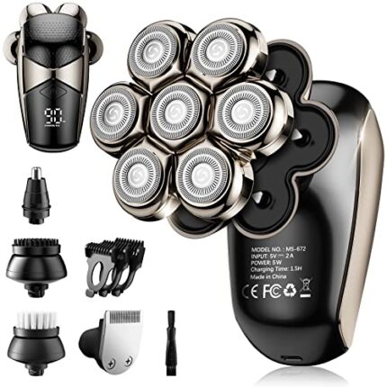 Detachable Head Shavers, SHPAVVER 5-in-1 Electric Razor IPX7 Waterproof for Bald Men, Wet/Dry LED Display Rechargeable 7D Rotary Shaver Grooming Kit with Type-C Charge (A)