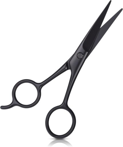 Premium Hand Forged Japanese Steel Hair Beard Mustache Scissors Cut Trim Groom Facial Hair Bangs (Black – 5.5″)