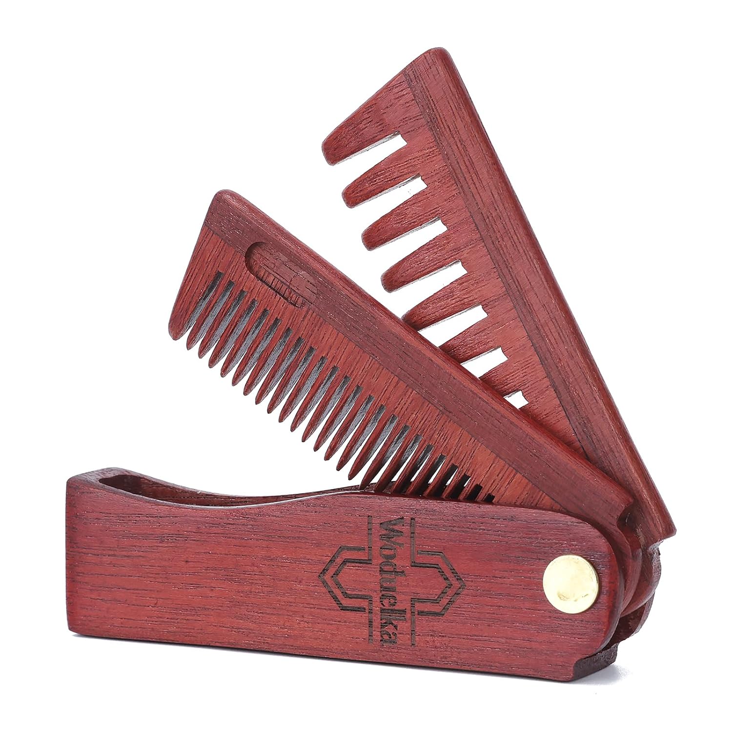 Home Beard & Mustache Combs 2 In 1 Folding Pocket Comb – Wooden Beard & Hair Styling Tool for Men, Fine Tooth & Wide Tooth Small Comb for Grooming Hair, Beards and Mustache, 180° Rotatable for Outdoor Travel & Home Use