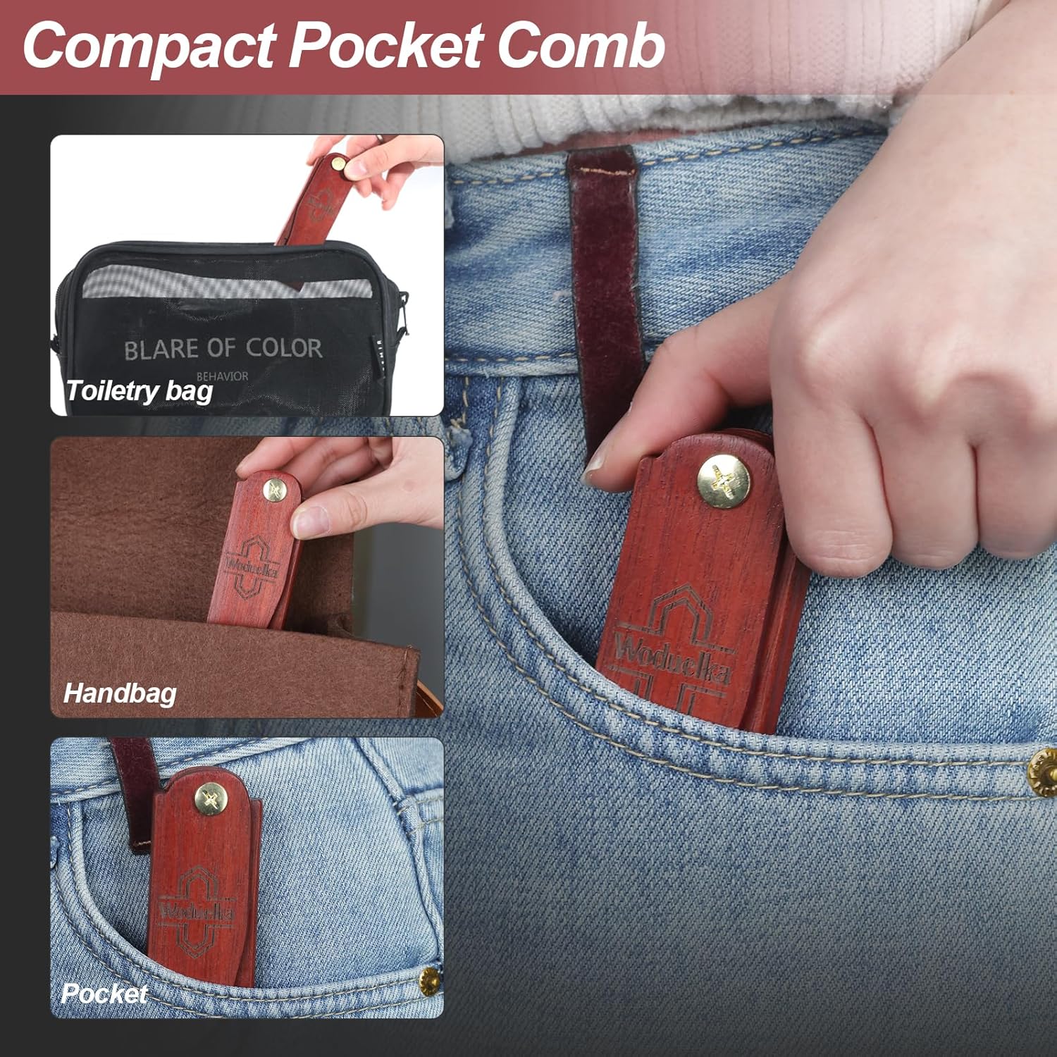 2 In 1 Folding Pocket Comb – Wooden Beard & Hair Styling Tool for Men, Fine Tooth & Wide Tooth Small Comb for Grooming Hair, Beards and Mustache, 180° Rotatable for Outdoor Travel & Home Use