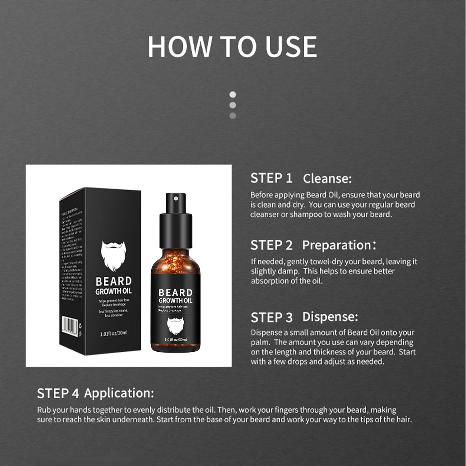 Our beard oil is easy to use – simply apply a small amount to the palms of your hands, rub them together, and massage the oil into your beard and skin for optimal results. Incorporate this step into your daily grooming routine to unlock the full potential of your beard.