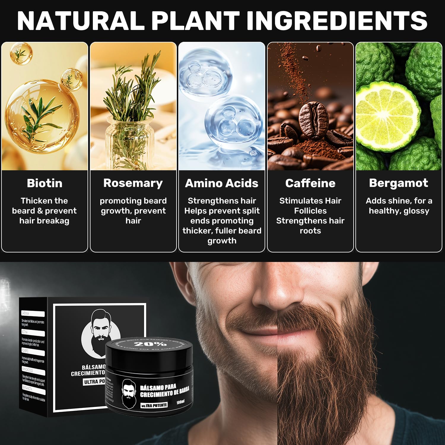 2 Pcs Cosmetics Para Barba, Bálsamo Estimulante de Barba,Estimulante Para Barba,Ultra Potente Beard Stimulating Balm, Crema Para Barba, Moisturizes & Strengthens Beard, 200ML / 7 OZ
