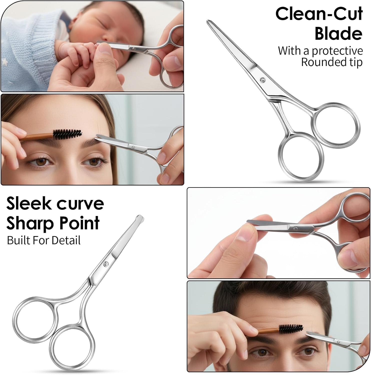 20 Pcs Small Grooming Scissors Facial Hair Trimming Beauty Scissors Curved Straight Rounded Safety Tips for Cutting Men Women Personal Eyebrows Ear and Nose Hair Beard Mustache Eyelashes Travel