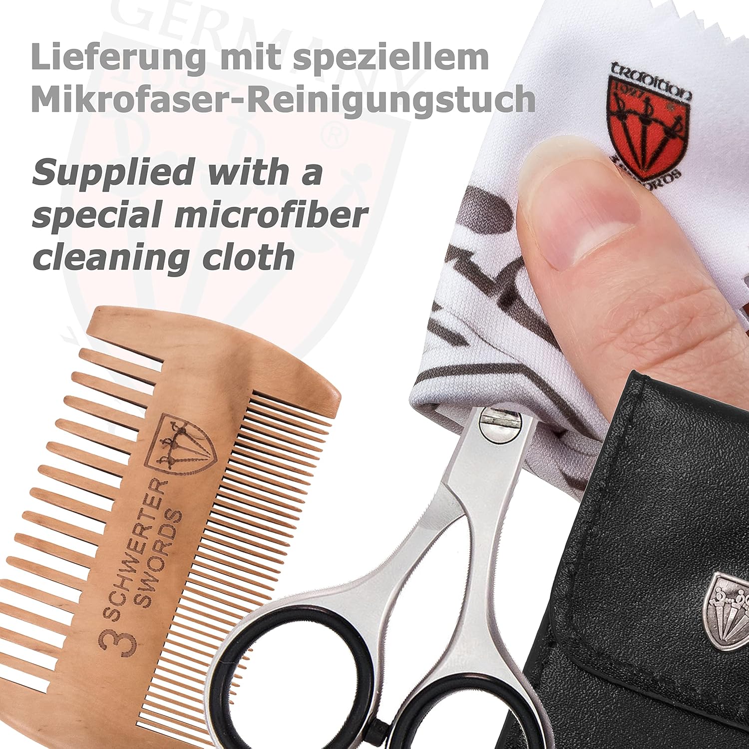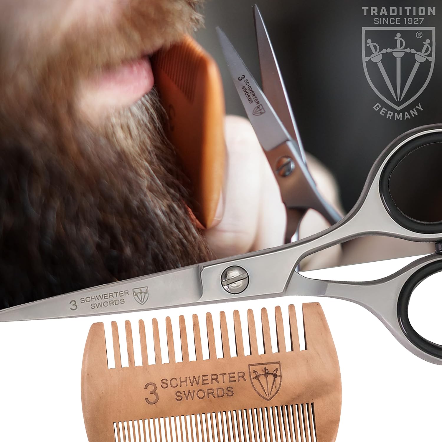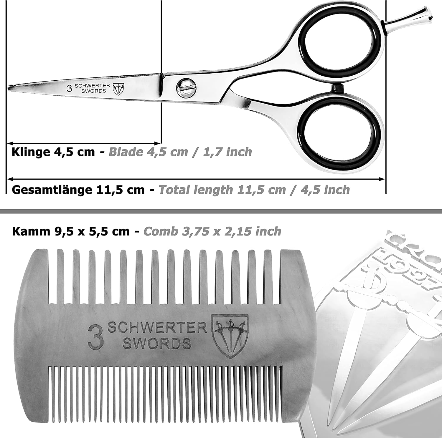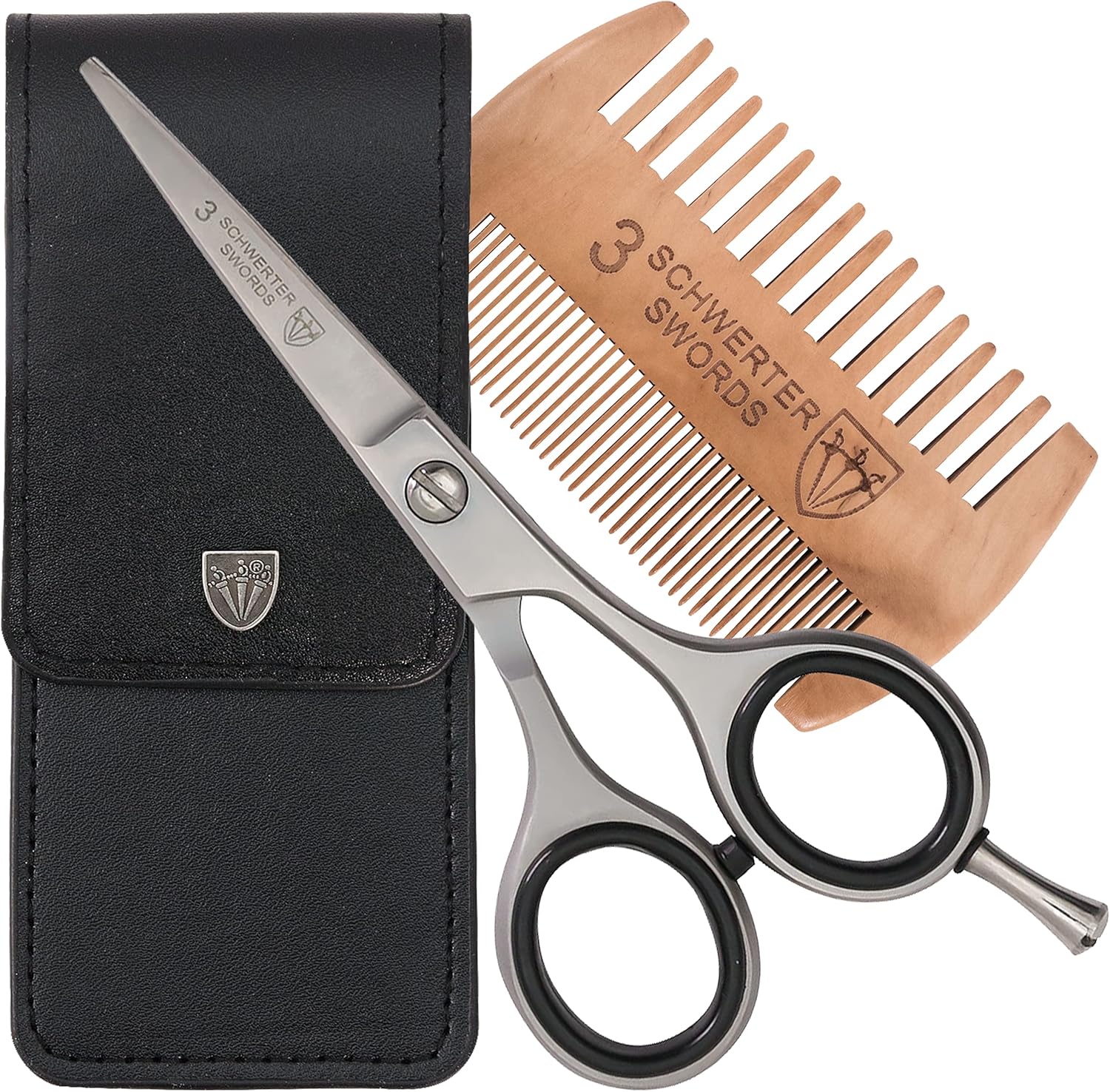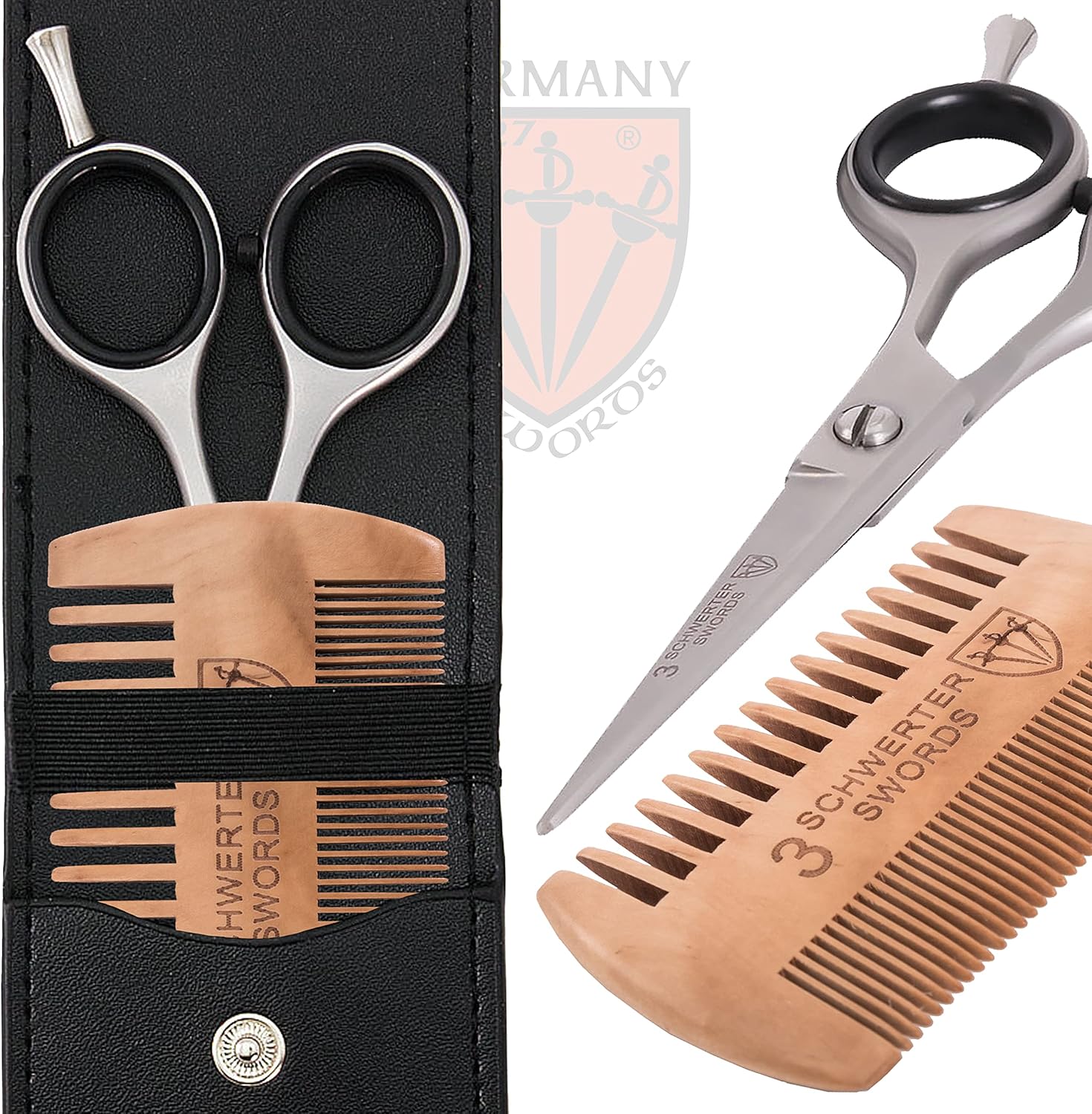 Home Beard & Mustache Combs 3 Swords Germany – professional BEARD MUSTACHE HAIR SCISSORS with BEARD COMB, stainless steel, straight blade, sharp, with black case