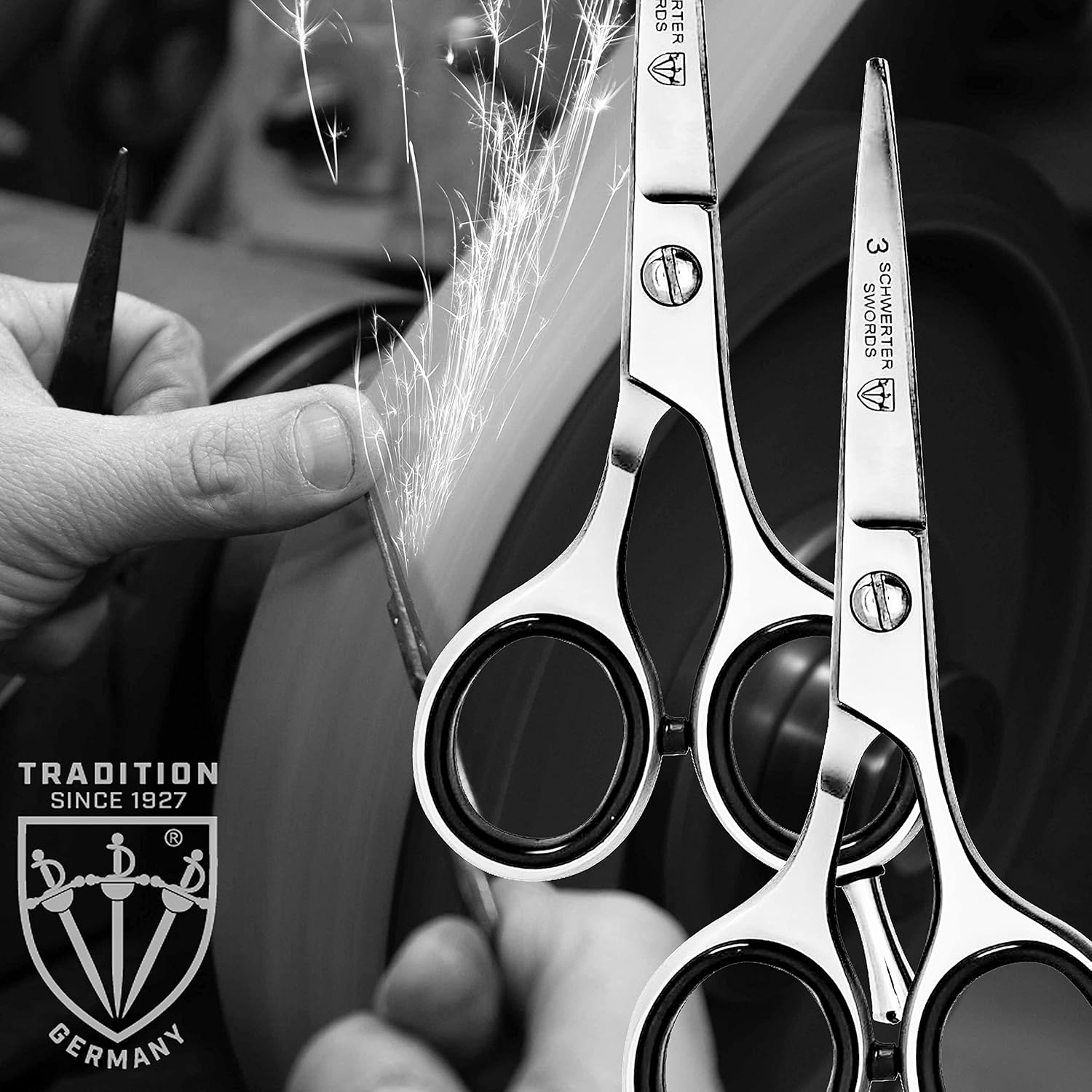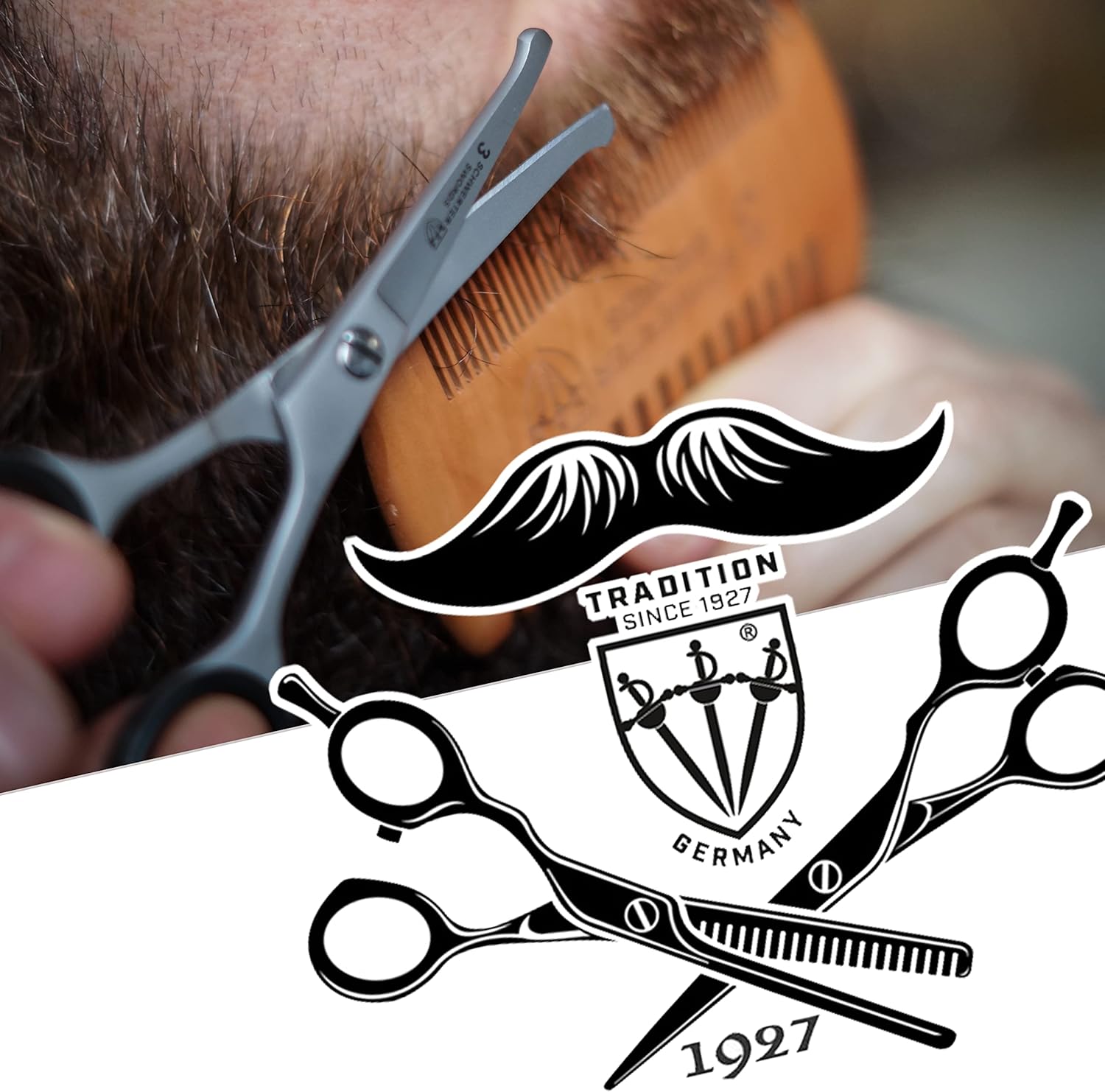 3 Swords Germany – professional BEARD MUSTACHE HAIR SCISSORS with BEARD COMB, stainless steel, straight blade, sharp, with black case