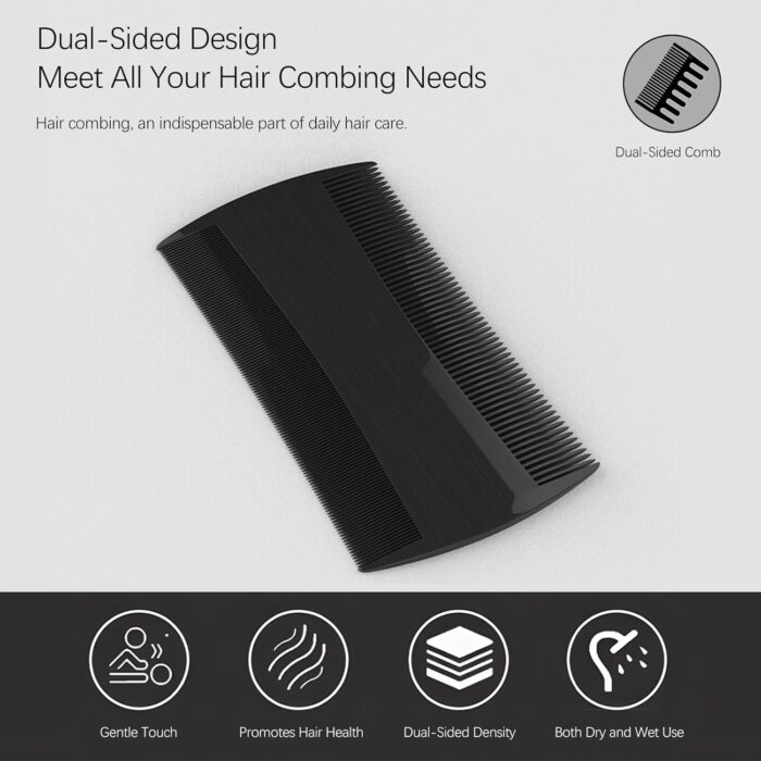 – Dual-sided teeth: fine-tooth side for styling thinner hair, wide-tooth side for thicker hair or detangling knots