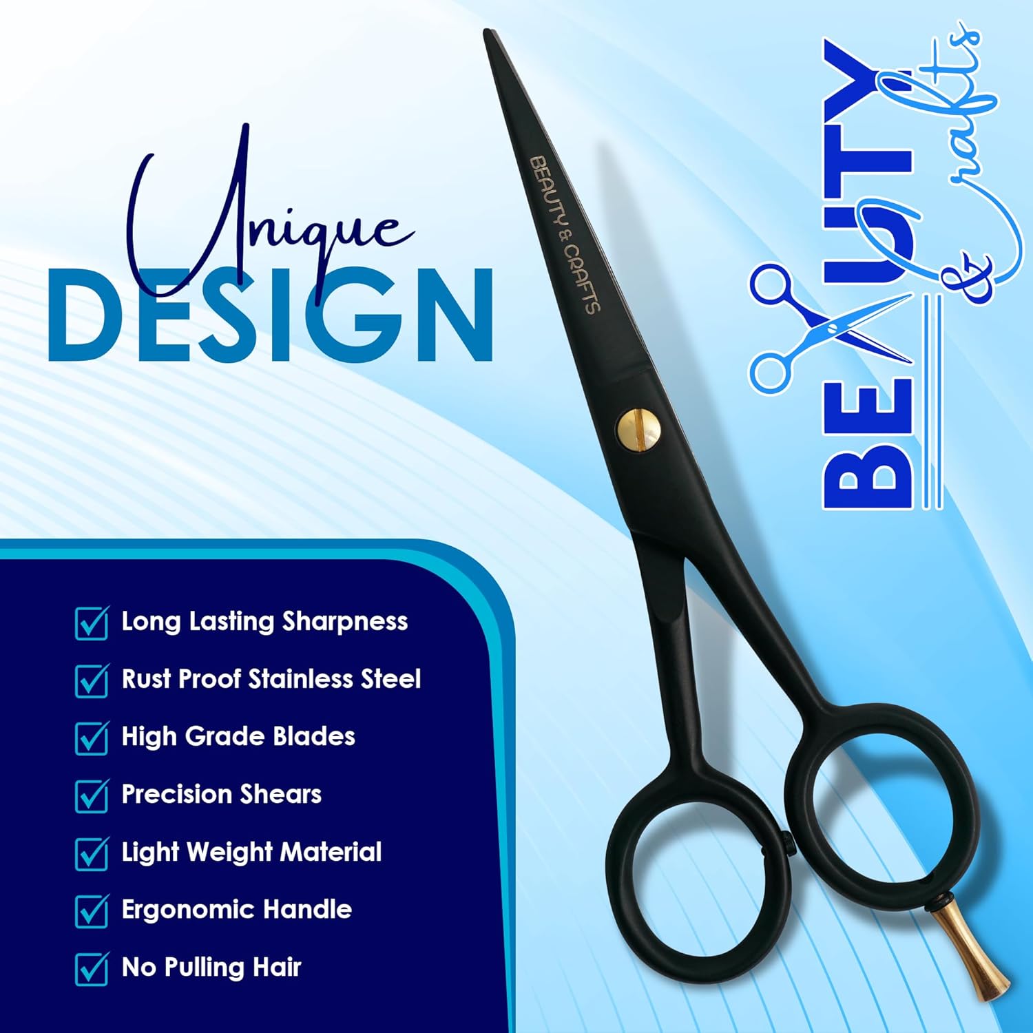 HB DOT Professional Beard and Mustache Scissors, Black 5.5? Beard Scissors of German Steel, Beard Scissors for Men Come with Carrying Pouch and Beard Comb, Beard Trimming Scissors for Home and Saloon