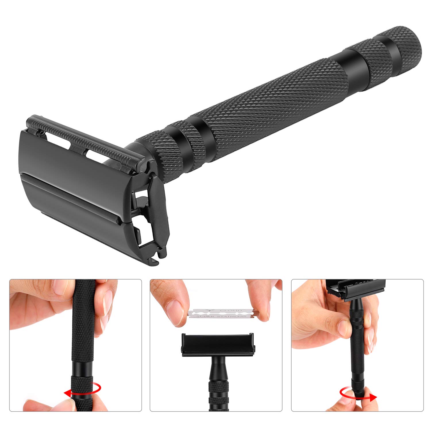 Amazing Safety Razor Shave Kit – Mysterious Black Men’s Shaving & Grooming Sets – Butterfly Open Safety Razor,Friendly Brush,Great Shaving Stand,Shaving Soap Bowl, Super Stainless Blades
