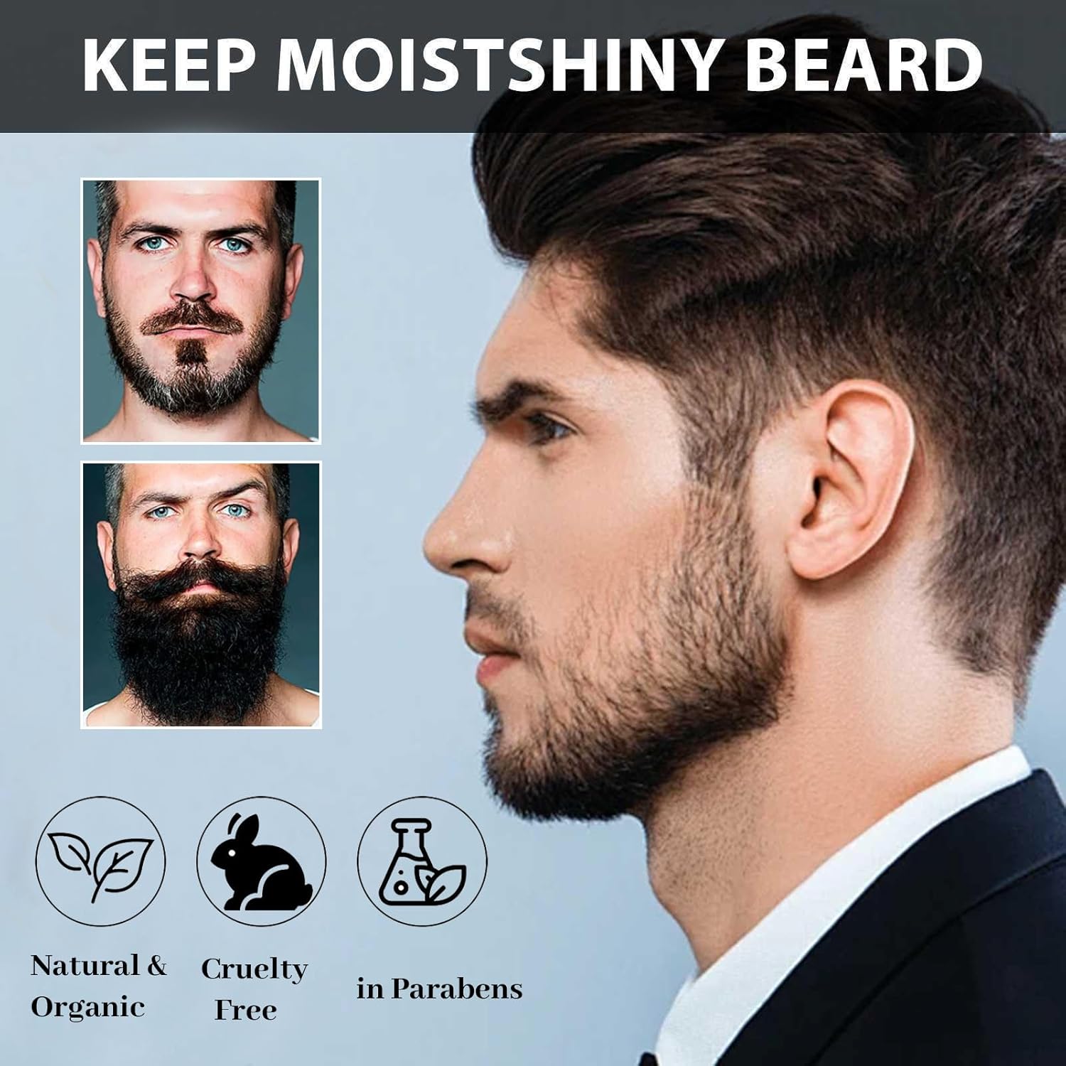 Smooth, Soften & Shine: Massage a generous amount of this restorative leave-in conditioner into a damp beard.. It’s like a