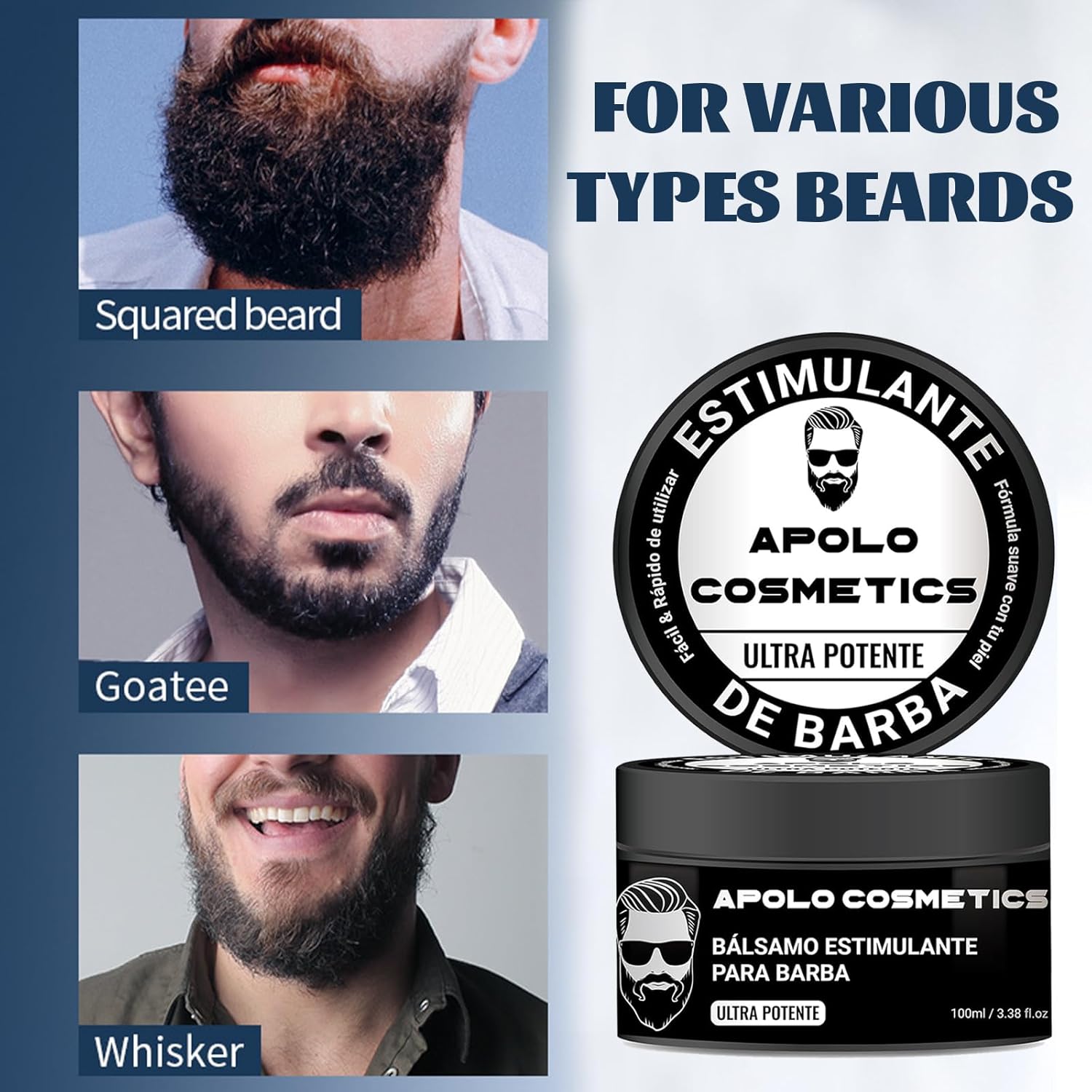 Apolo Para Barba, Estimulante Para Barba Ultra Potente, Bálsamo Para Crecimiento de Barba Para Hombre, Apolo Para Cabello Barba Crema, Beard Beard Growth Oil Stimulating Balm Thicker, Fuller (2pcs)