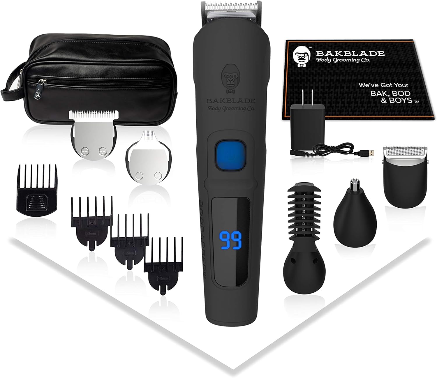 baKblade 11-in-1 Mens Grooming Kit for Manscaping – Bodbarber – Electric Beard Trimmer for Men, Groin Groomer, Body Groomer, Nose & Ear Groomer – Cordless & Waterproof Hair Clippers