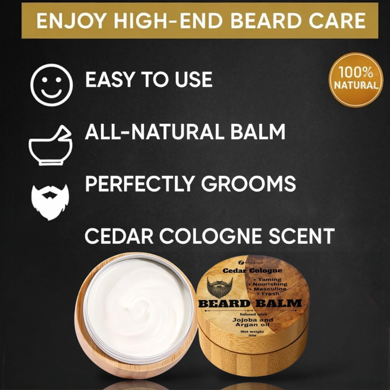 For External Use Only Beard Balm is a game-changer for beard grooming. The nourishing ingredients of Jojoba and Argan oils leave your beard feeling soft and healthy, while the cedar cologne scent adds a touch of sophistication to your daily routine. The taming formula effectively controls unruly hair, reducing frizz and making styling a breeze. The convenient size and stylish bamboo container make it easy to take this beard balm on the go. Overall, this product offers excellent performance, quality, ease of use, and value for money.