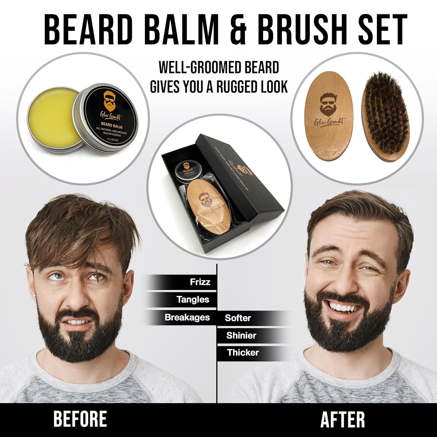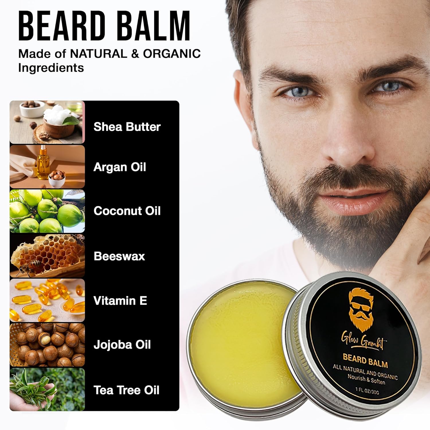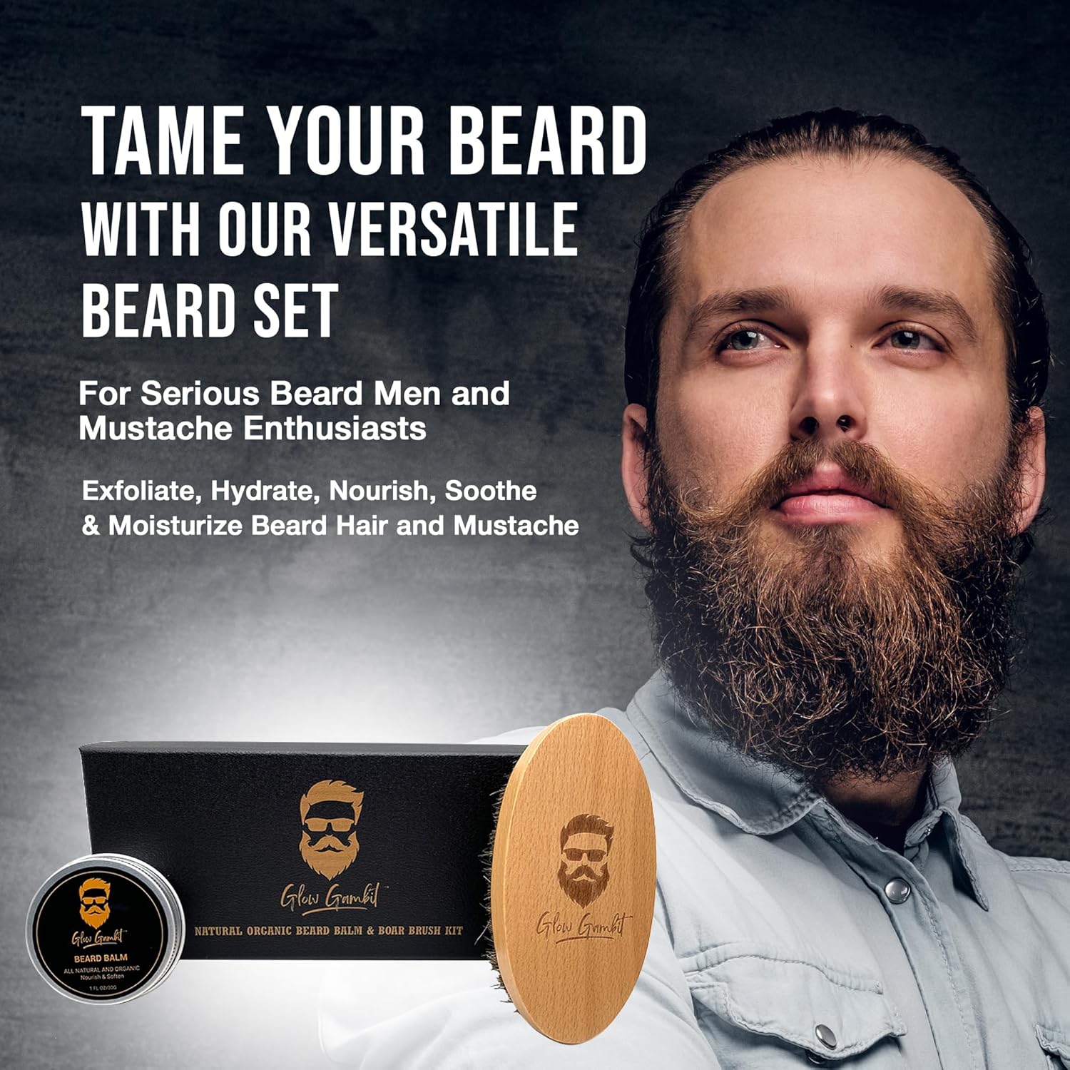 Title: Glow Gambit Beard Balm & Brush Grooming Kit: Natural Beard Care Essentials