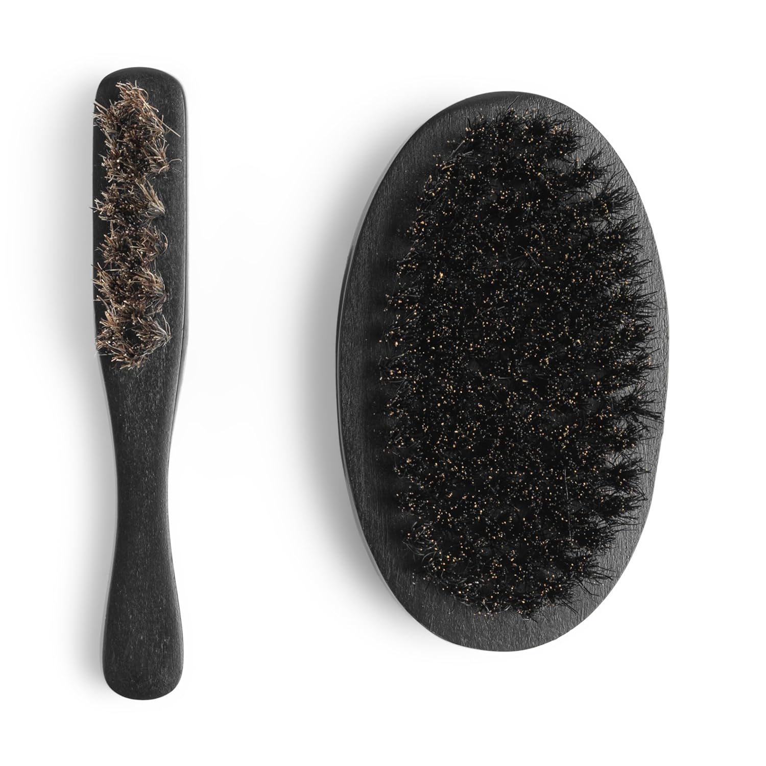 Beard Brush for Men – Natural Boar Bristle Beard Brush Kit – Soft Small Mustache Brush for Men – Premium Travel Grooming Set by Hunter Jack