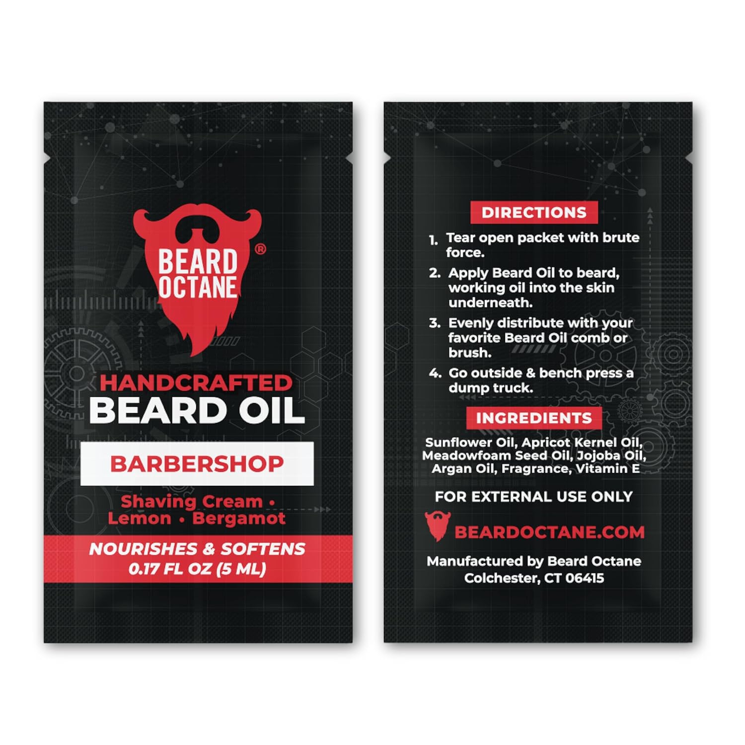 – Includes 12 Beard Octane beard oil samples (5ml each)
