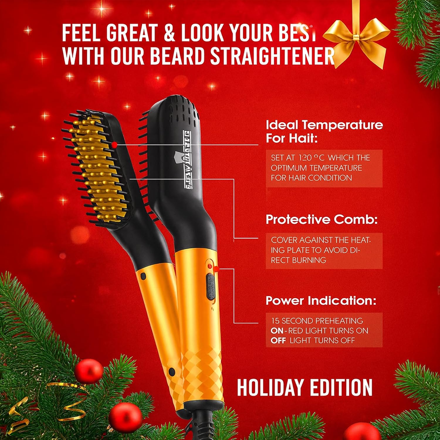 With grooming tools like a beard brush, nourishing oil, shaping balm, and more, this kit has everything you need for complete beard care. The heated brush features compact bristles that glide through all beard lengths and textures, while the dual heat settings ensure effective straightening for any beard type.