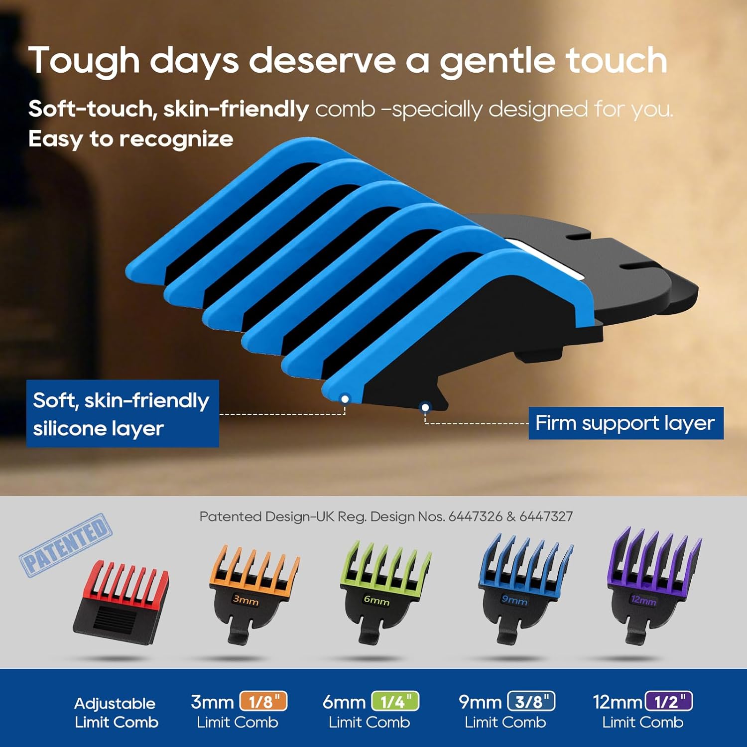 - Color-coded comb for quick adjustments