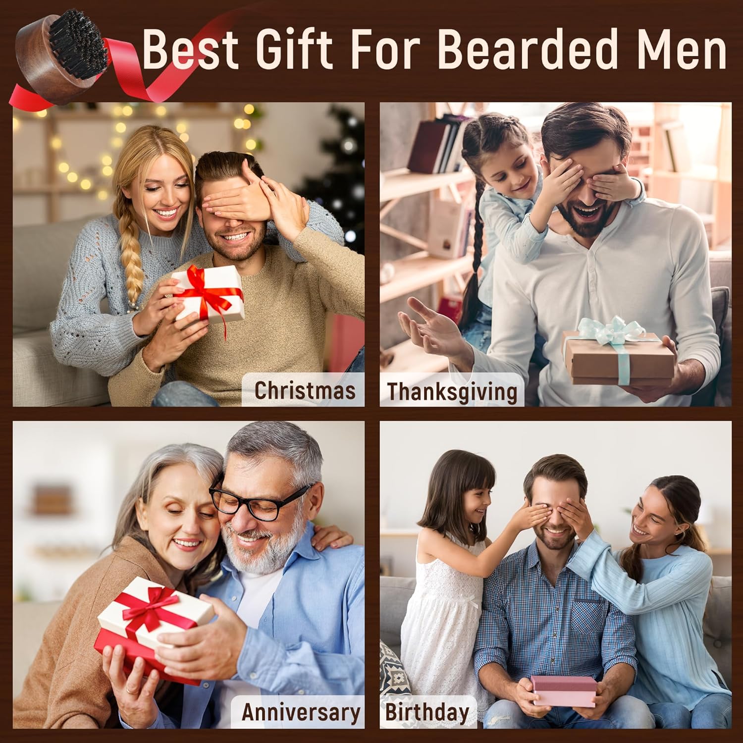 Beard Brush For Men & Beard Comb Set w/Mustache Scissors Grooming Kit, Natural Boar Bristle Brush, Dual Action Wood Comb, And Travel Bag Great For Christmas Gift