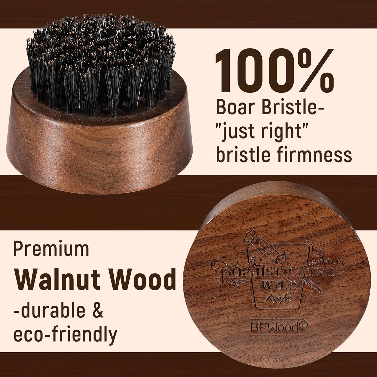 BFWood Beard Brush for Men – Boar Bristles Small and Round – Black Walnut Wood