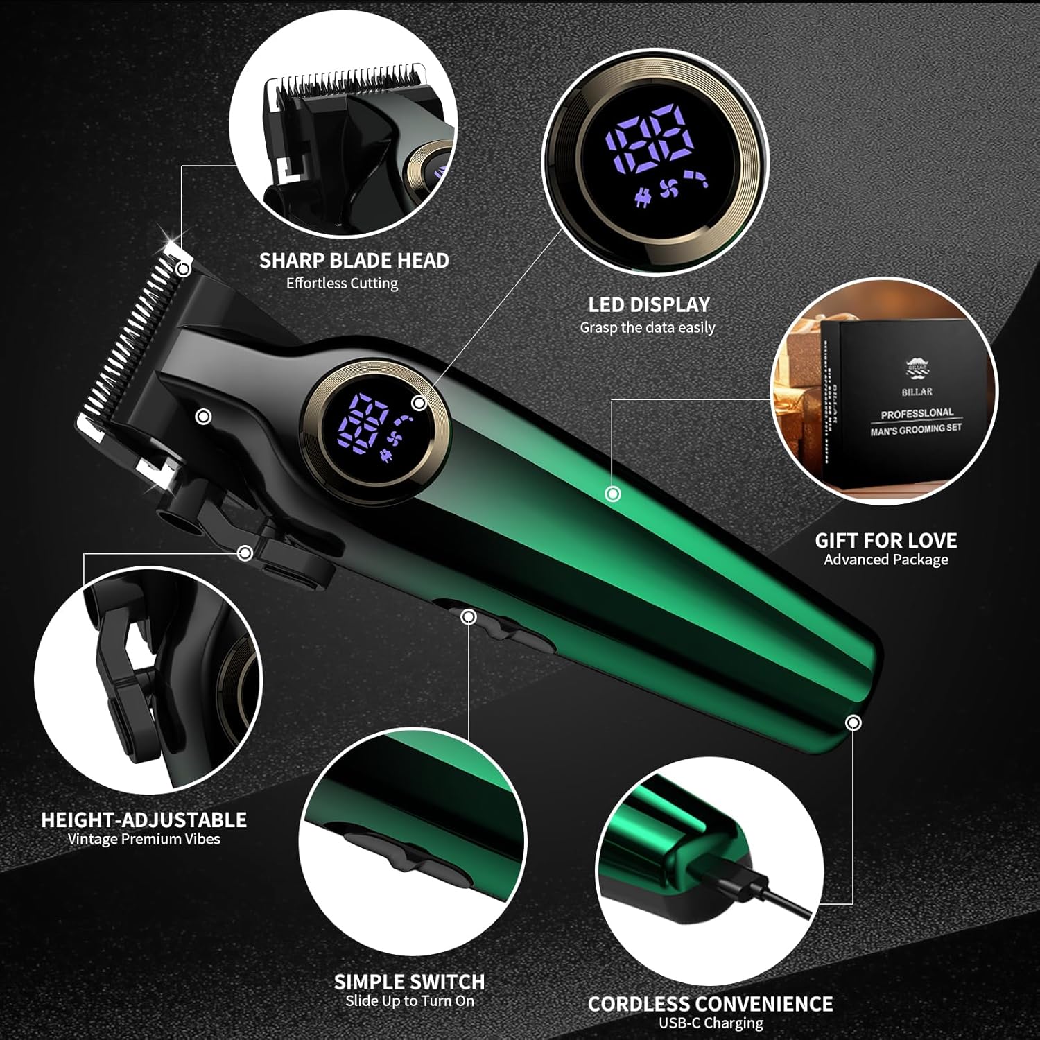 - Includes 8 guide combs, 2 cleaning brushes, 2 bottles of oil, a Type-C charging cable, a comb, and storage case