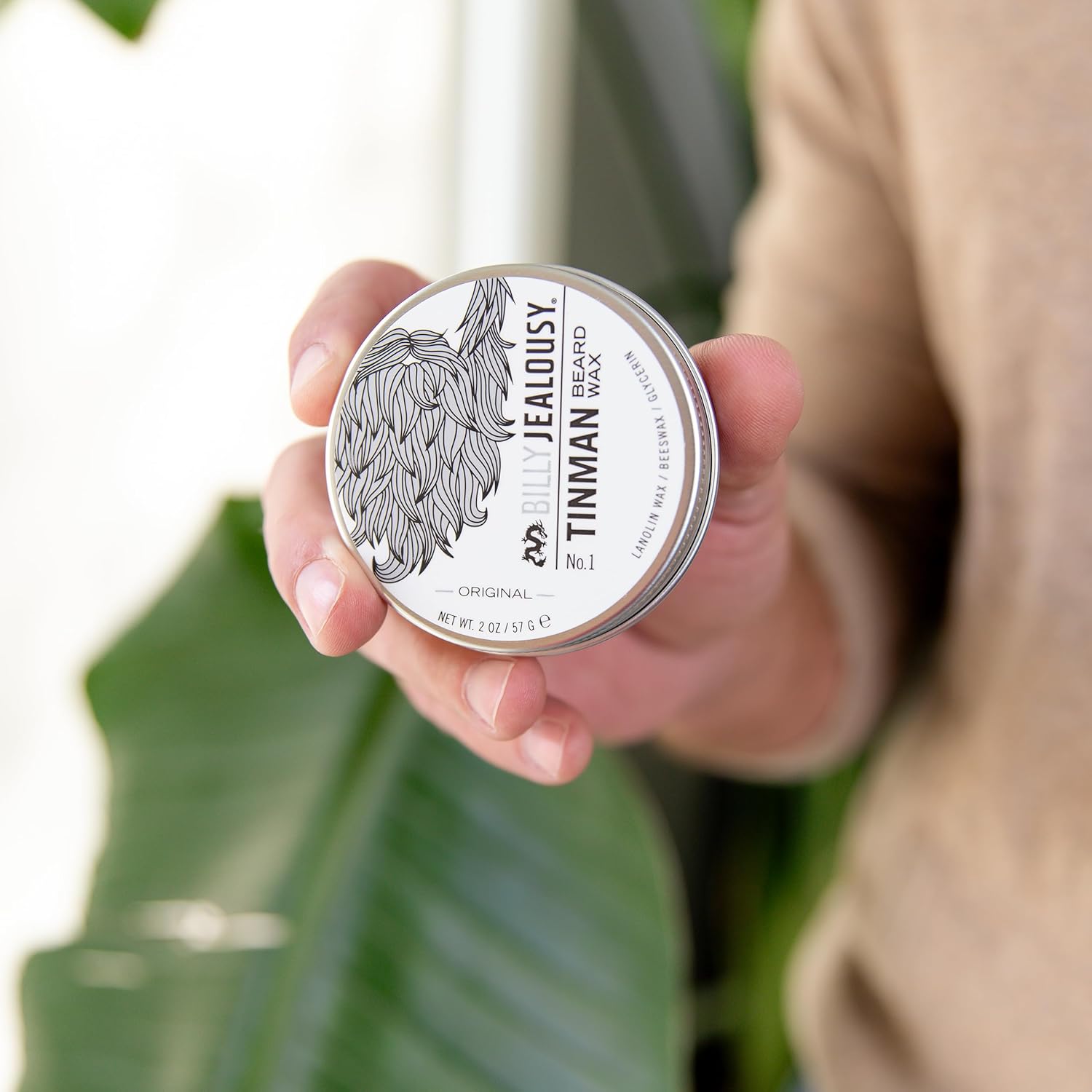 Billy Jealousy Tinman Beard Wax with Light Hold & Matte Finish, Nourishing Beard Care Product Formulated with Natural Beeswax & Glycerin for Soft, Tamed Facial Hair, 2 Oz