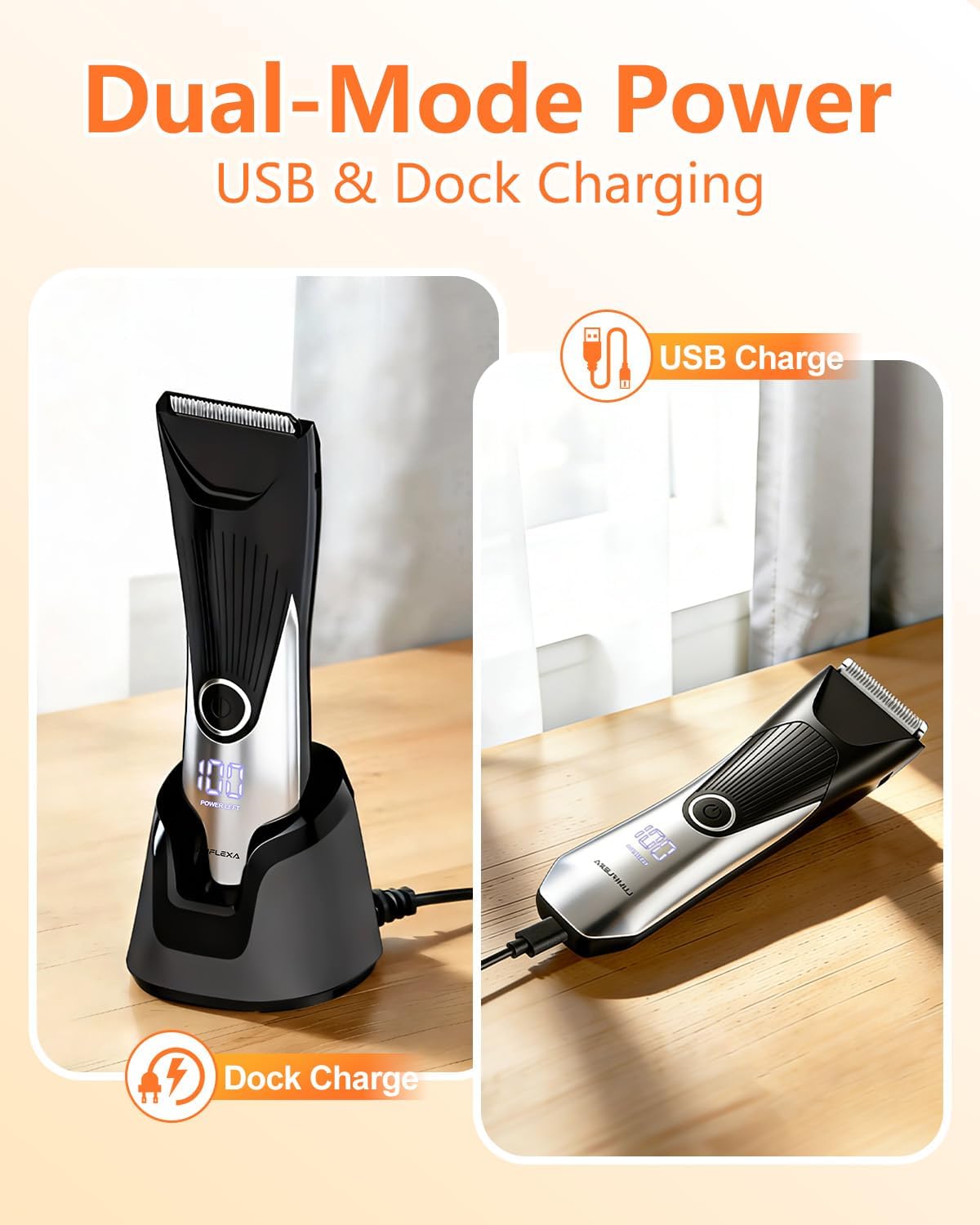 Body Hair Trimmer, LED Display, 6500 RPM Motor Manscaper for Men, 3 Adjustable Combs, USB & Dock Charging, IPX7 Waterproof Body Hair Groomers, Wet or Dry Use for Groin/Legs/Chest