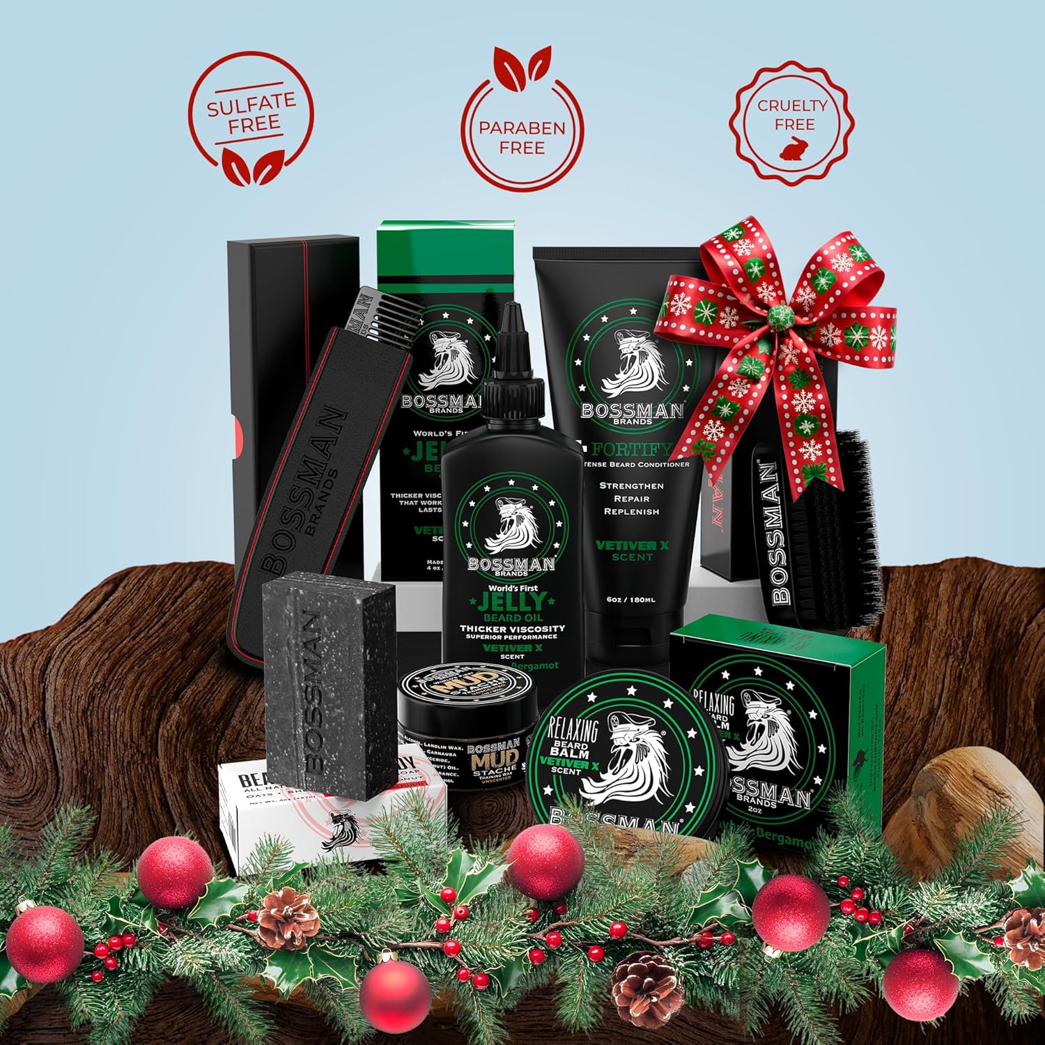 - Includes Beard Jelly Oil, Fortify Beard Conditioner, Beard Balm, MUDstache Wax, Bar Soap, Metal Comb with case, and Beard Brush