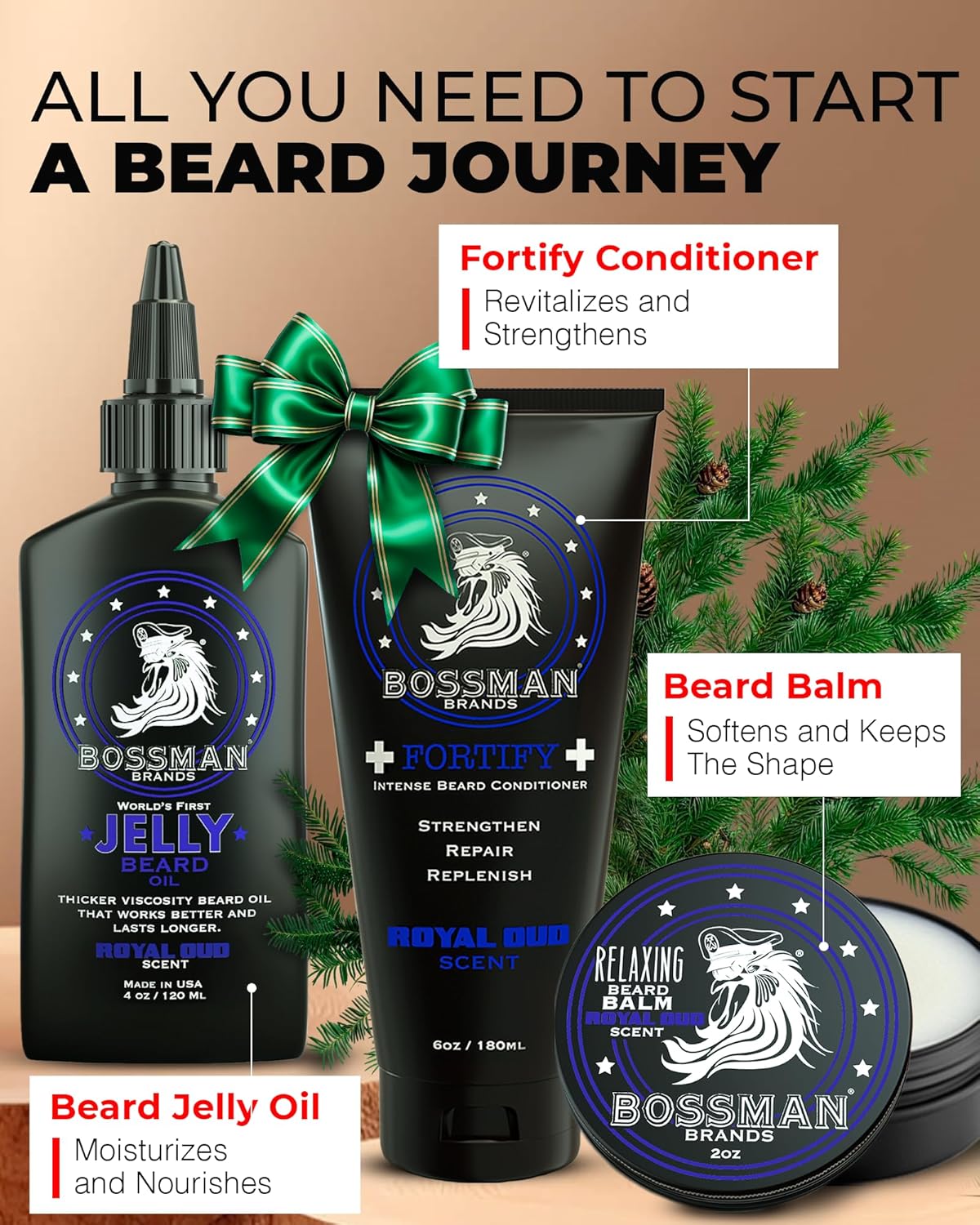 Are you looking to take your beard game to the next level? Look no further than the Bossman 3-Piece Beard Treatment Kit. This comprehensive kit includes the Fortify Intense Beard Conditioner, Jelly Beard Oil, and Relaxing Beard Balm, designed to give your beard the care it deserves.
