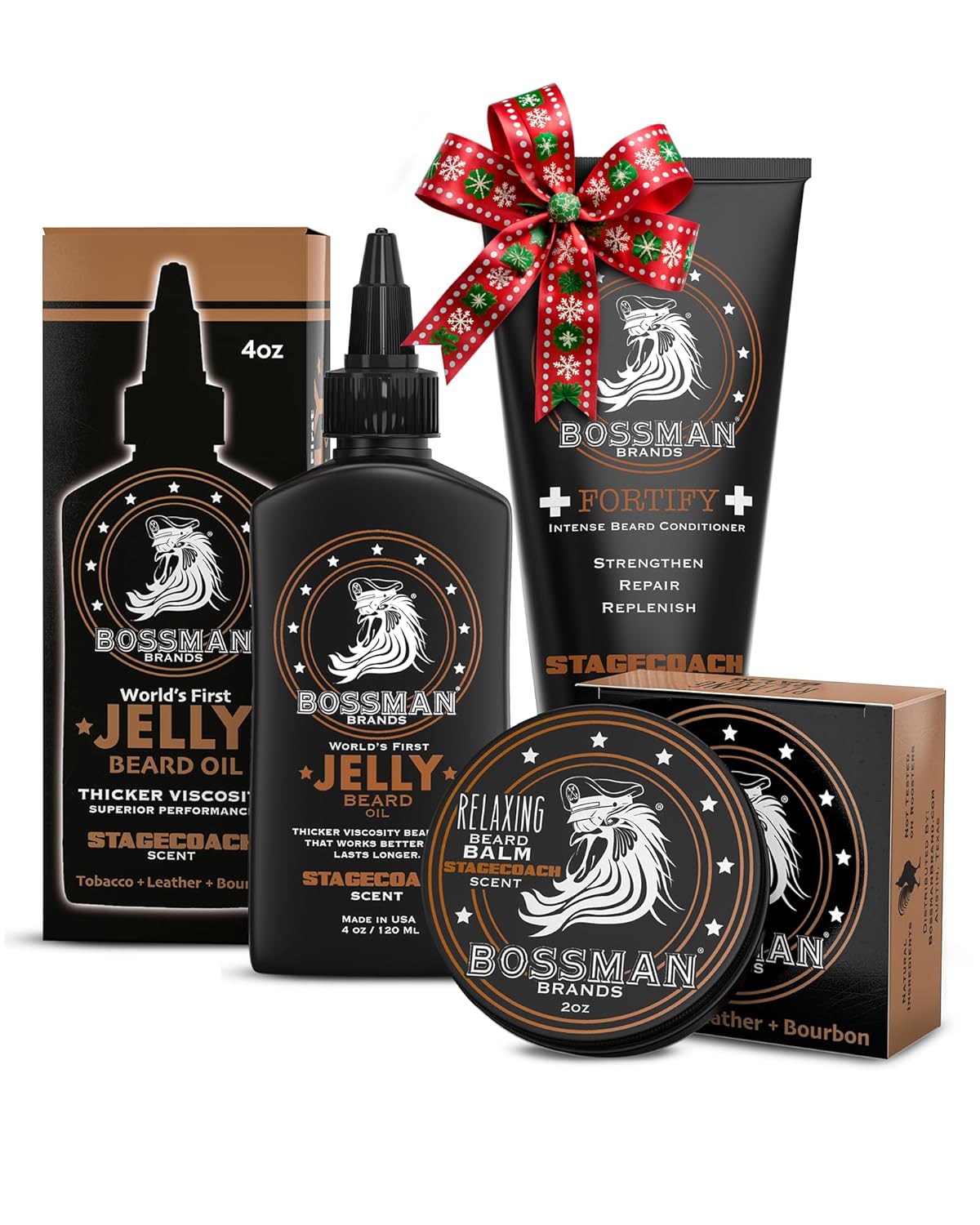 Bossman Essentials Beard Kit for Men, Set of 3 – Beard Oil Jelly, Fortifying Conditioner Cream, Beard Balm – Grooming Growth Care Accessories – Gift Set for Men (Stagecoach)
