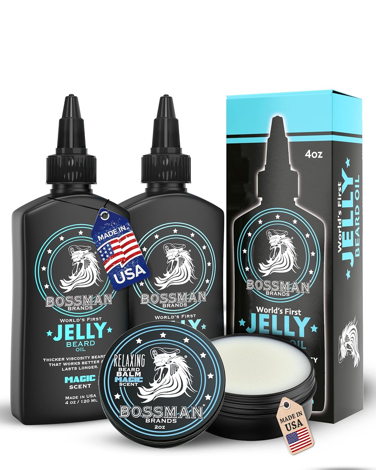 Be the first to review “Bossman Jelly Beard Oil & Beard Balm Bundle (12 oz in Total, Magic Scent) – Softens, Tames Moisturizes & Conditions – Magic Scent – Natural Ingredients & Made in USA” Cancel reply