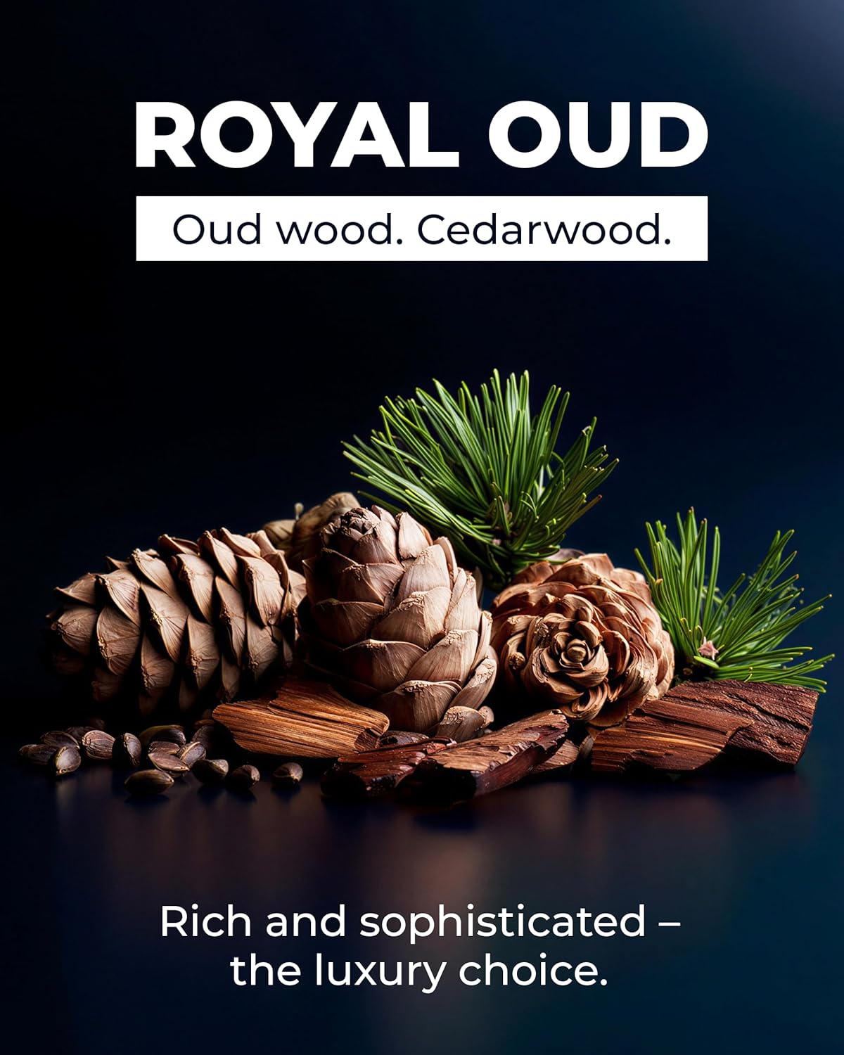 • Scent: Royal Oud – rich and sophisticated, the luxury choice for a refined fragrance.
