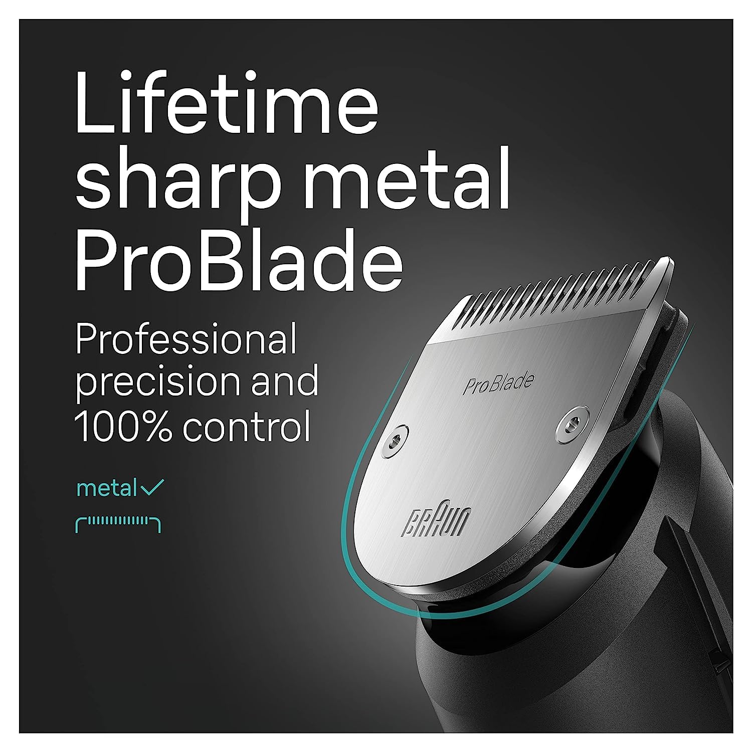 The Braun Series 7 All-In-One Style Kit is a game-changer for anyone looking for a comprehensive grooming solution. The ProWheel with 40 length settings allows for precise grooming, while the ProBlade ensures sharp and clean cuts every time. The 100-minute cordless runtime is a bonus, making it convenient for travel or on-the-go touch-ups.