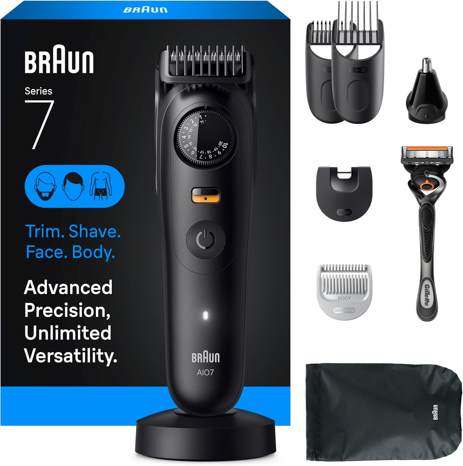 Are you tired of juggling multiple grooming tools to keep your beard, hair, ears, and nose in check? Look no further than the Braun Series 7 PRO Trimmer Kit. This all-in-one grooming solution allows you to effortlessly trim and groom your entire body with precision and comfort. Engineered in Germany for durability, this trimmer kit is designed to make grooming a breeze, whether you’re at home or on the go.