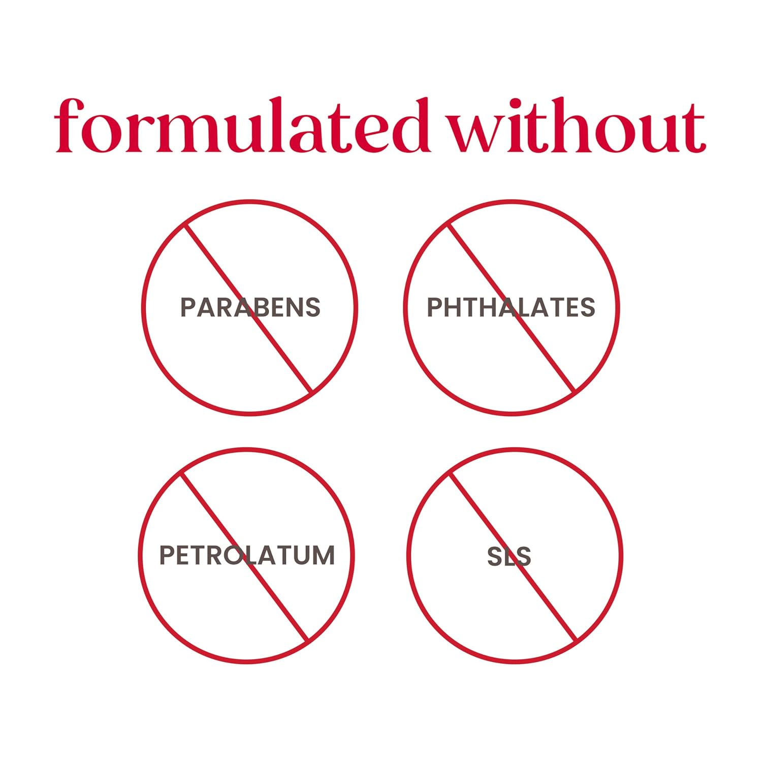 - Formulated without parabens, phthalates, petrolatum, or SLS