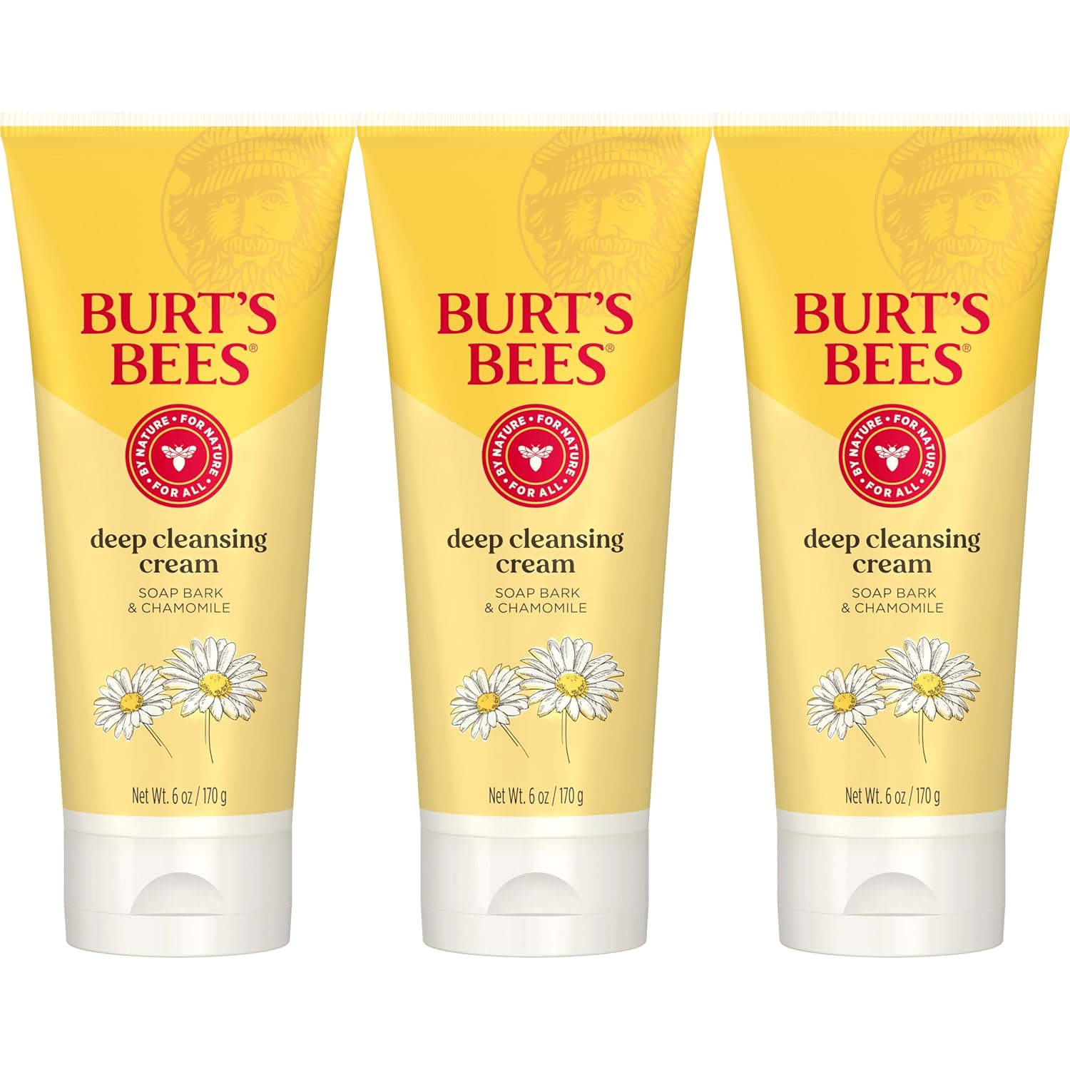Burt’s Bees Face Wash, Deep Facial Cleansing Cream, College Back to School Dorm Essentials, All Natural Cleanser with Chamomile, 6 Ounce (Pack of 3) (Packaging May Vary)