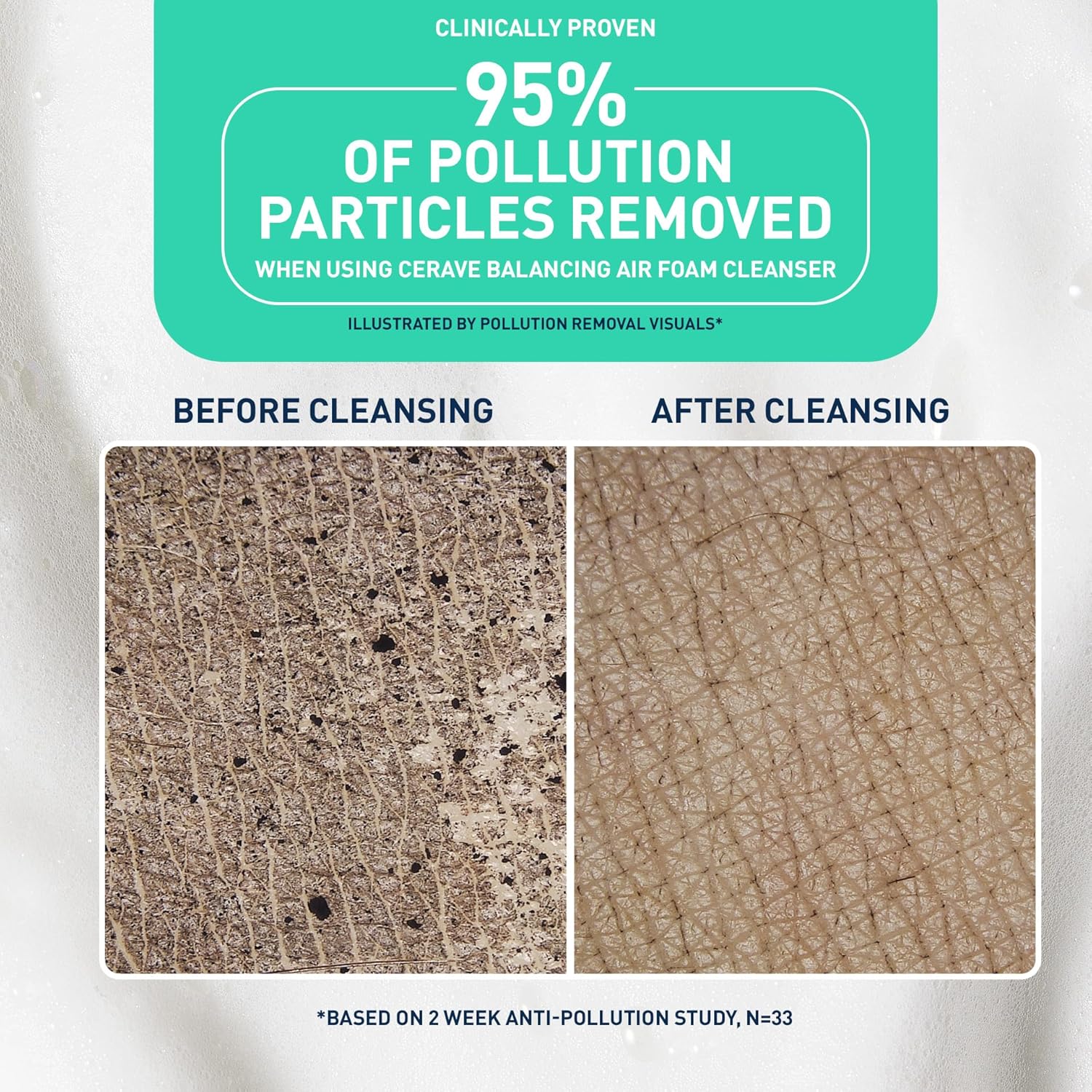The air foam texture of this cleanser is not only effective but also a pleasure to use, as confirmed by 98% of users in a consumer study. Additionally, 97% of users agreed on its effectiveness in removing dirt, impurities, and oil, while 95% enjoyed the light, pleasant scent. These results are supported by various clinical and consumer studies, ensuring both effectiveness and a positive user experience.