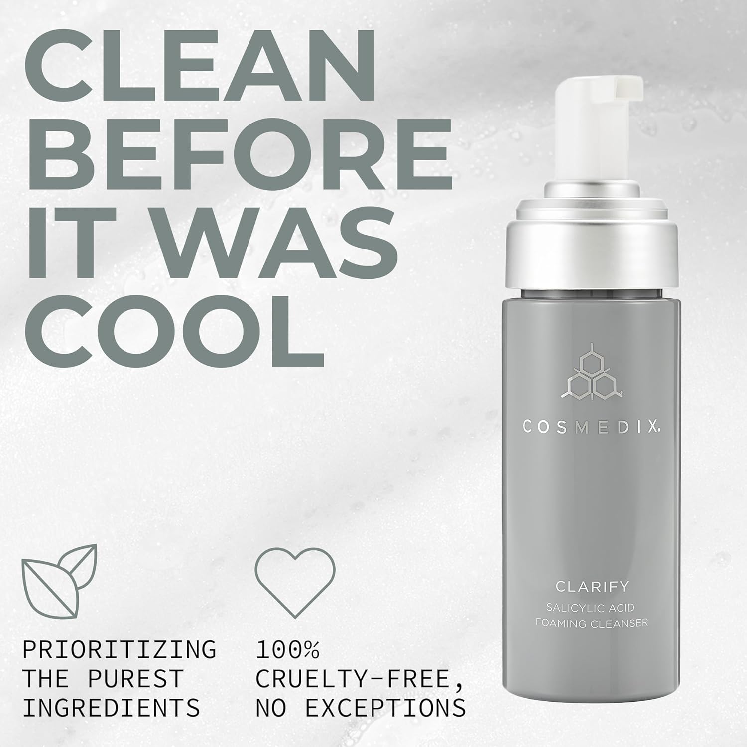 COSMEDIX Clarify Salicylic Acid Foaming Face Wash – Gentle Exfoliating Cleanser for Sensitive & Blemish-Prone Skin – Aloe Vera Formula for Glowing, Balanced Skin – 145 ml / 5 fl oz